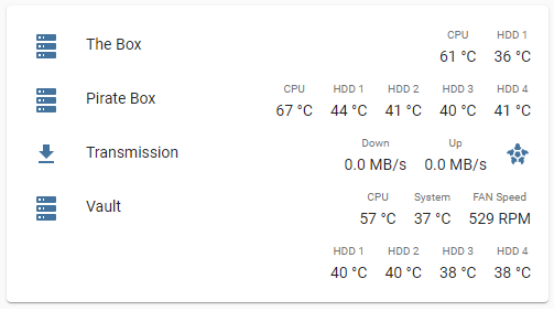 On the other side, I run Home Assistant, where I’ve been putting some information about the temperatures of my home servers and its drives. You know, stuff normal people want to automate, right? Like turning on fans, getting alerts if something is weird, etc. Normal people do this, right? Right?