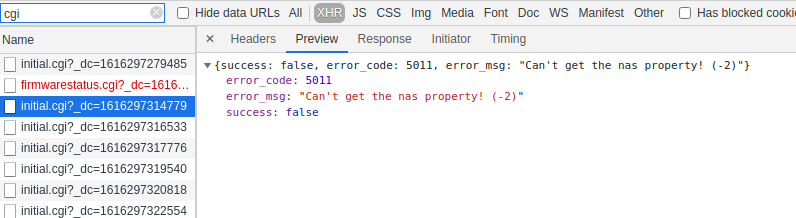 { "success": false, "error_code": 5011, "error_msg": "Can't get the nas property! (-2)" }