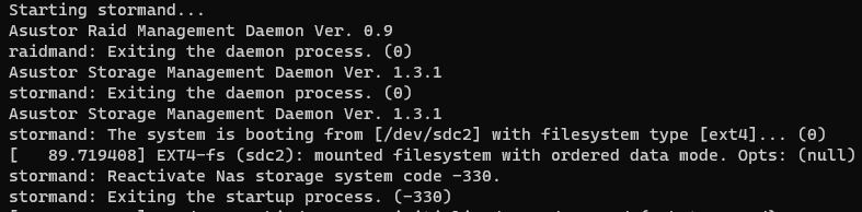 Since nothing is easy, it wouldn’t detect any disks. I honestly kinda expected this. Hey, I’m running the firmware on a very unsupported hardware and most of the things it does on the web interface is over those CGI binaries, and they need a bunch of information from the hardware itself to work. The CGI call actually helps debugging this out: we call list-disk and get an error as output. We can even see the disks getting detected by the kernel as well.